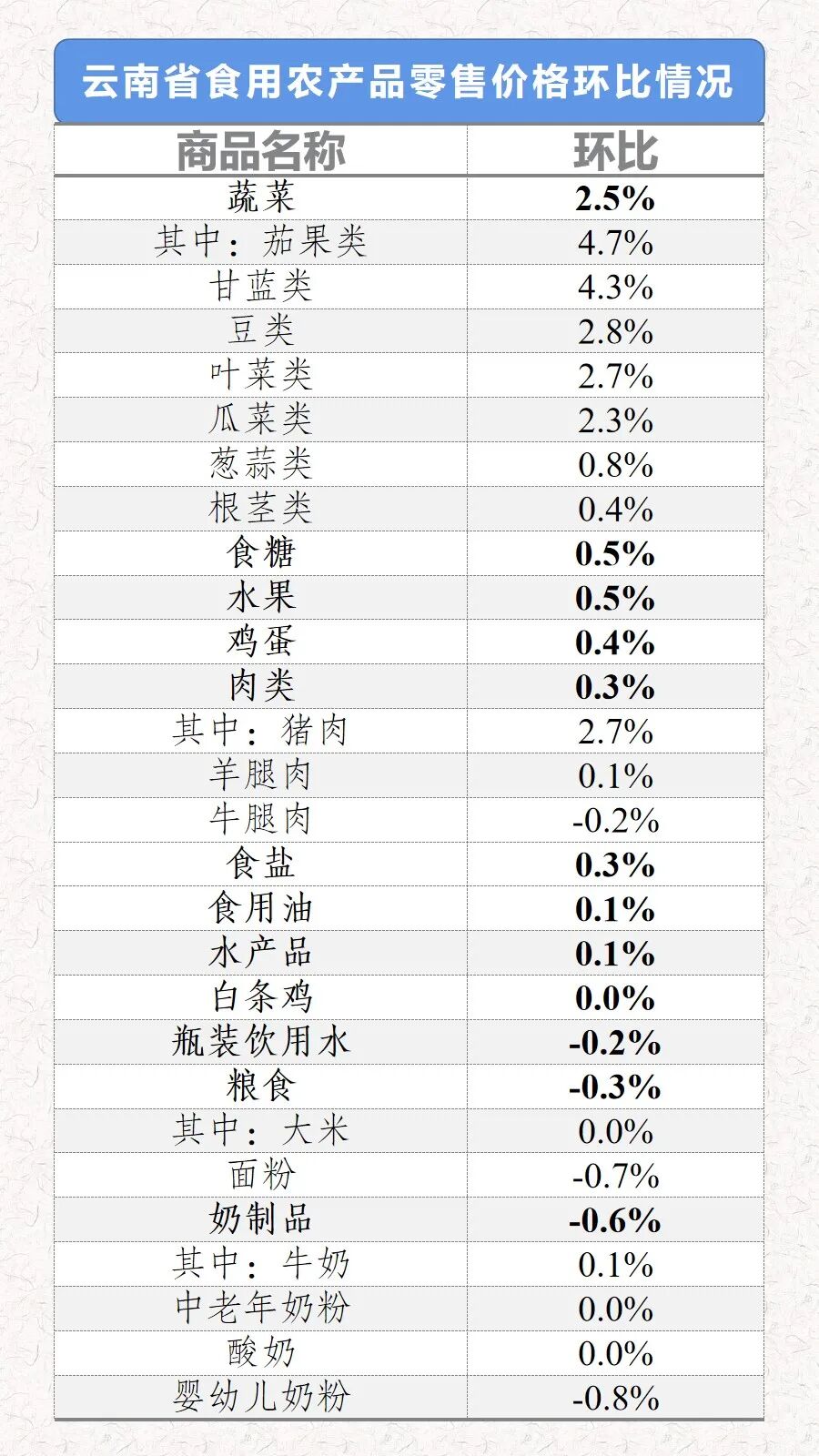 原标题:市场监测|2021年10月25日-31日云南省生活必需品零售价格环比8涨1平3跌