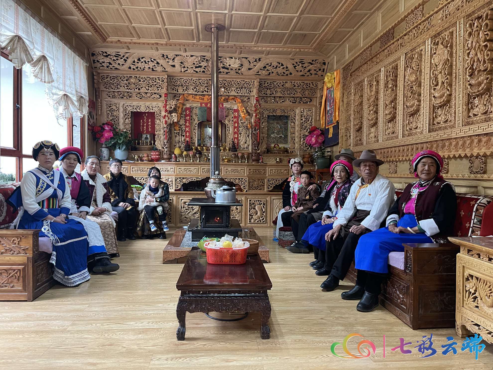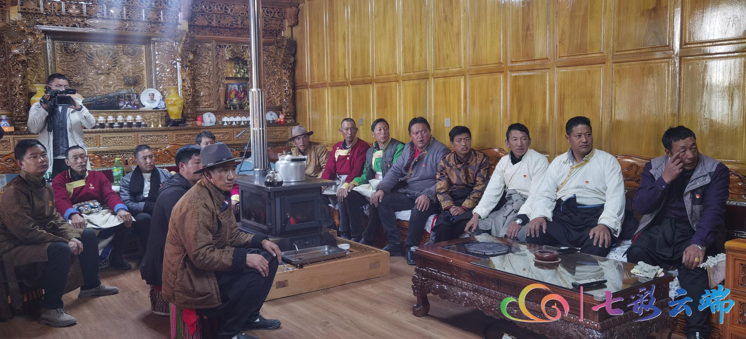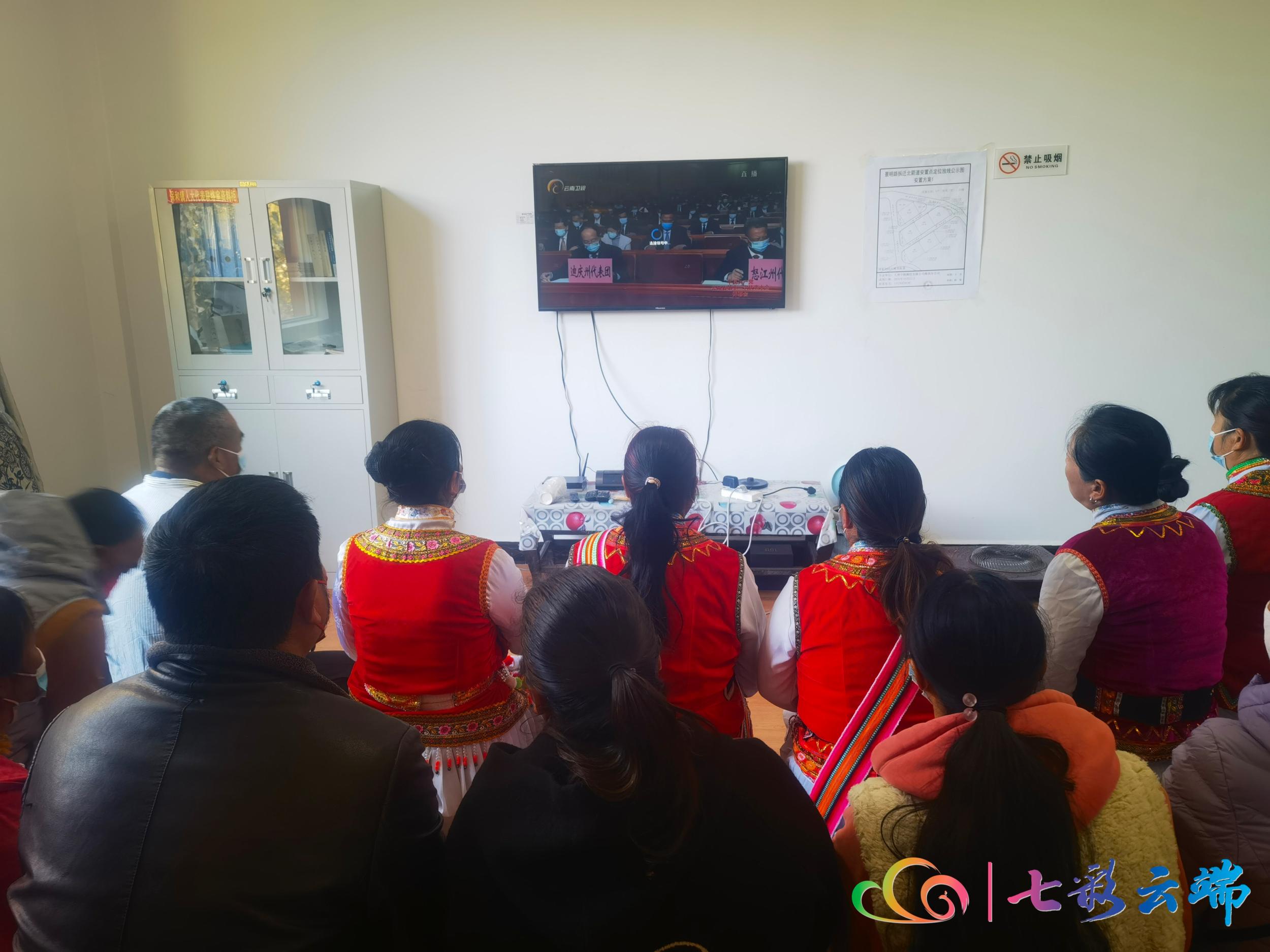 一大早,香格里拉市建塘镇金龙社区朱合老人一家身着节日盛装,围坐在电视机前聚精会神地收看省第十一次党代会开幕会。