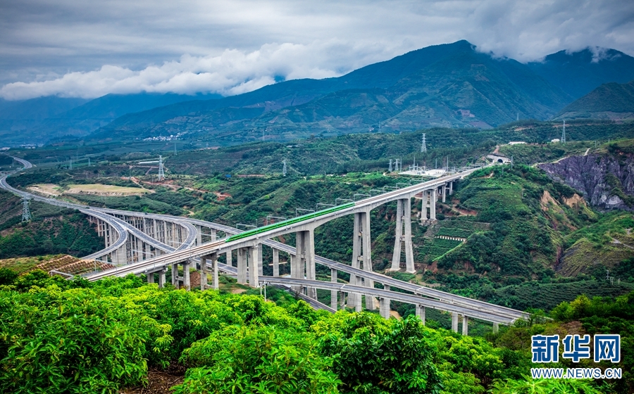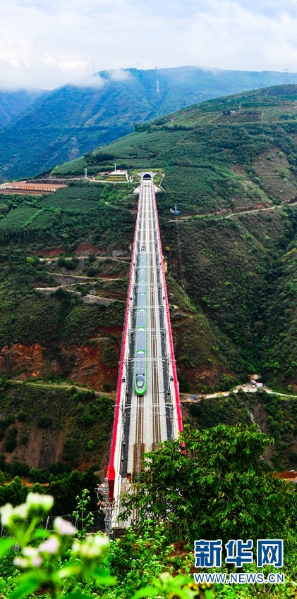 “绿巨人”奔驰在元江双线特大桥上。新华网发(何俊云/摄)