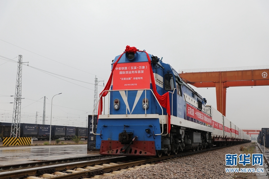 2021年12月27日,中老铁路(玉溪至万象)国际货运冷链列车开行。新华网发(中国铁路昆明局集团有限公司 供图)