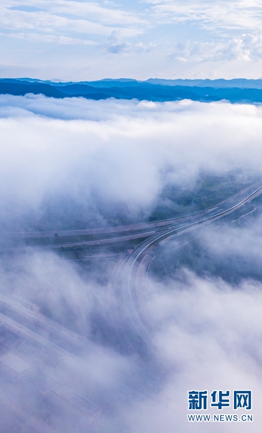 云雾中的中老铁路。新华网发(何俊云/摄)