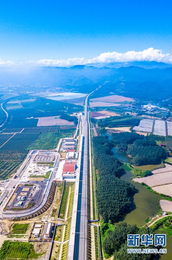航拍视角下,穿行在山川田野中的中老铁路。新华网发(何俊云/摄)