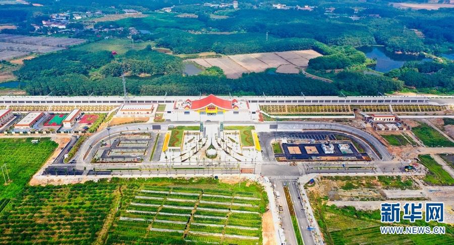 航拍视角下的橄榄坝站。新华网发(付世凯/摄)