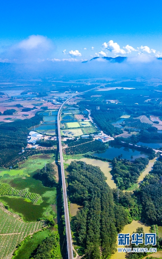 航拍视角下的橄榄坝特大桥。新华网发(何俊云/摄)