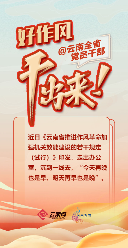 今年2月,省委、省政府印发了《推进作风革命加强机关效能建设的若干规定(试行)》,成立由省委书记、省长任双组长的云南省推进作风革命加强机关效能建设工作领导小组,同时针对当前亟需推进的重大项目建设、产业发展、营商环境建设等重点工作拿出系列硬招实招新招。