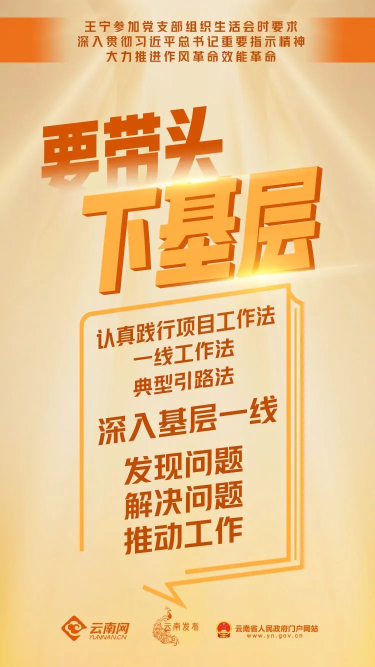 2月23日召开的全省推进作风革命加强机关效能建设工作动员部署会上,省委书记王宁对全省干部提出了六条要求:要开短会、讲短话、发短文;要讲方法、讲效率、讲质量;要提高站位、解放思想、改革创新;要抓问题清单、责任清单、负面清单;要坚持经常下基层;坚持“一把手”作表率、领导干部带好头、中层干部挑重担、一般干部不拖后腿努力争当先锋,形成一级做给一级看、一级带着一级干的良好局面。3月20日,各级书记齐聚基层的这次交流座谈,听实话、摸实情,用身影诠释了“坚持经常下基层”要求,成为我省推行“一线工作法”的生动案例。