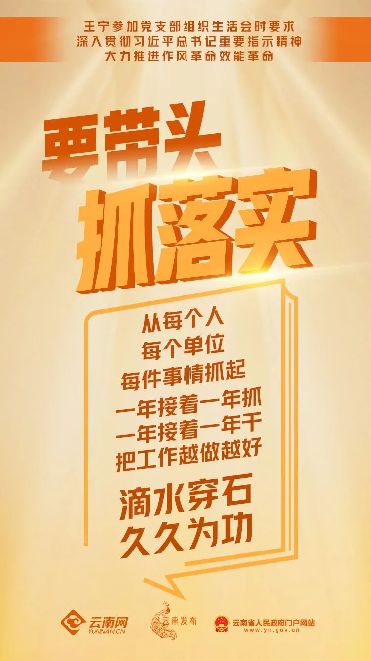 当前,全省上下正齐心大推进作风革命、效能革命。省委书记王宁提出3个“要带头”,再次对全省党员领导带好头、作示范提出要求,对推进作风建设不松劲、不停步作出指示。全省党员干部要以身作则、以上率下,认真开展、强力推动、真情投入作风革命、效能革命。