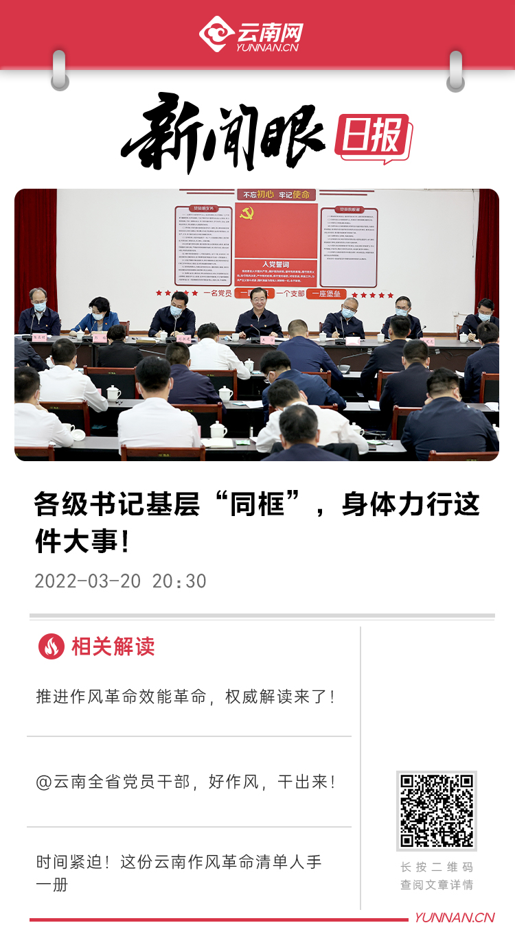 3月20日,一次“走出办公室”深入社区开展的党支部活动、一场省委书记、省级“四大机关”和昆明市基层党组织书记齐聚基层一线的座谈会,对带头践行作风革命效能革命给予了生动诠释。【查看详细】