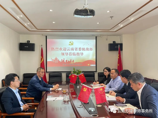 4月13日下午,云南省委统战部副部长李涛、新的社会阶层人士工作处处长寇强一行到云南万捷律师事务所实地调研,走访慰问民主党派、无党派律师,并就统战工作的开展进行座谈交流。云南万捷律师事务所主任徐国功律师、副主任余巍律师、毕志荣律师、高级合伙人赵永丽律师参会交流。