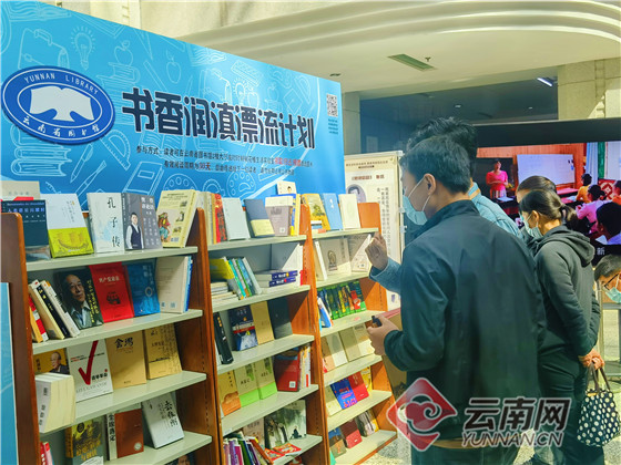读者驻足“书香润滇漂流计划”书架。张琦敏 摄