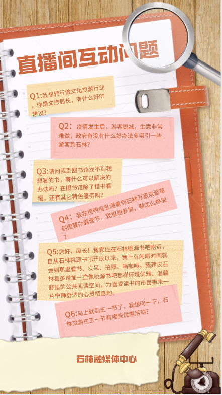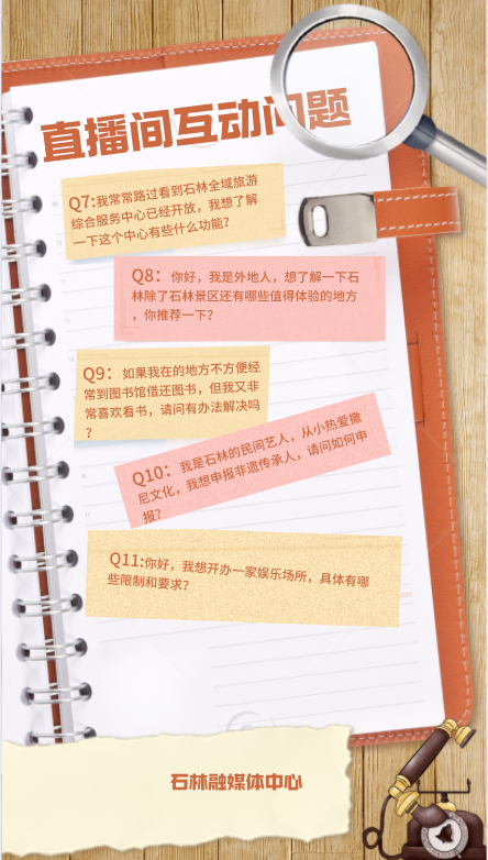 政府围着企业转、企业有事马上办!4月25日下午3点,石林彝族自治县营商环境云上会客厅第一期直播活动在该县政务服务中心举办,石林县文化和旅游局作为第一家“做客”直播间的单位在线为企业家、市民朋友们介绍了石林县文化和旅游局在招商引资方面、文化和旅游方面的工作情况,并通过接听热线电话在线回答了十一位热心观众提出的问题咨询。