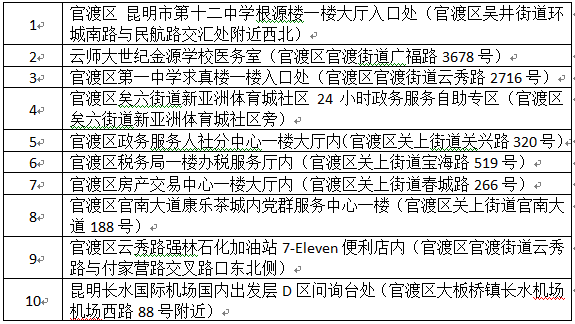 官渡区“e办通”“e办通”自助服务终端部署点位位置