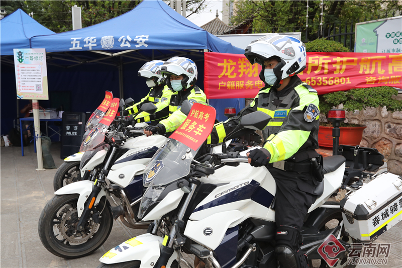 今年高考,为给广大考生创造安全稳定的考试环境,龙翔派出所精心组织、周密部署,多措并举全力护航高考顺利进行。安排警力提前对昆一中考点开展考前安全检查以及周边治安复杂场所安全整治,及时排查消除安全隐患,营造良好治安环境;开通绿色通道,户籍室和现场临时身份证办理接力站形成联动,为考生办证提供便捷服务,确保考生按时进入考场。由骑警组成的高考护航服务车现场时刻待命,为遇交通拥堵、车辆故障、忘带证件及走错考场的考生提供应急援助服务;在护航高考服务点还准备了急救药箱、饮用水、口罩、考试用笔等物品、以解考生及送考家长一时之需。