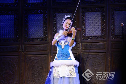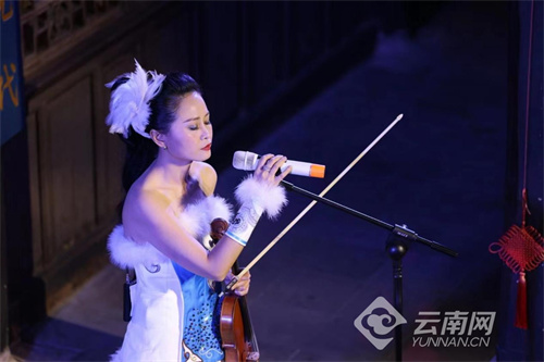 云南网讯(记者 李熙临)7月4日晚,中国青年音乐作曲家、著名原创音乐制作人、小提琴演奏家郭燕妮在云南文投集团旗下马家大院挥弓演奏原创大型民族史诗音乐《云上喀卓》。