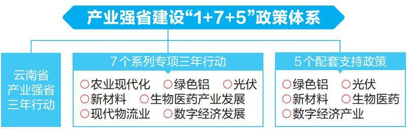云南网讯(记者 王丹 胡晓蓉 段晓瑞 李雨瞳) 为深入贯彻落实省第十一次党代会精神,加快推进产业强省建设,近期,我省先后印发实施云南省产业强省三年行动,农业现代化、绿色铝、光伏、新材料、生物医药产业发展、现代物流业、数字经济发展7个三年行动,以及绿色铝、光伏、新材料、生物医药、数字经济产业5个配套支持政策,形成了以产业强省三年行动为统领,以7个系列专项三年行动、5个配套政策为支撑的产业强省建设“1+7+5”政策体系。