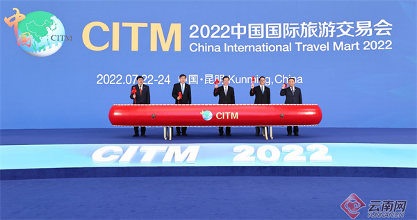 云南网讯(记者 杨猛 左超 瞿姝宁)7月22日上午,由文化和旅游部、中国民用航空局、云南省人民政府共同主办的2022中国国际旅游交易会在昆明开幕。