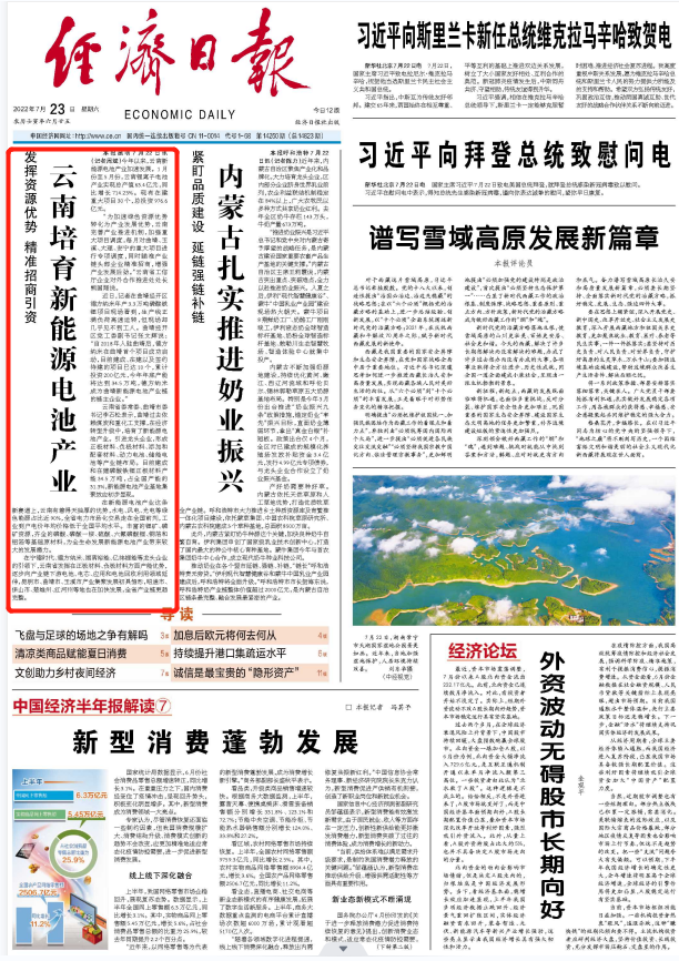 7月23日《经济日报》头版版面