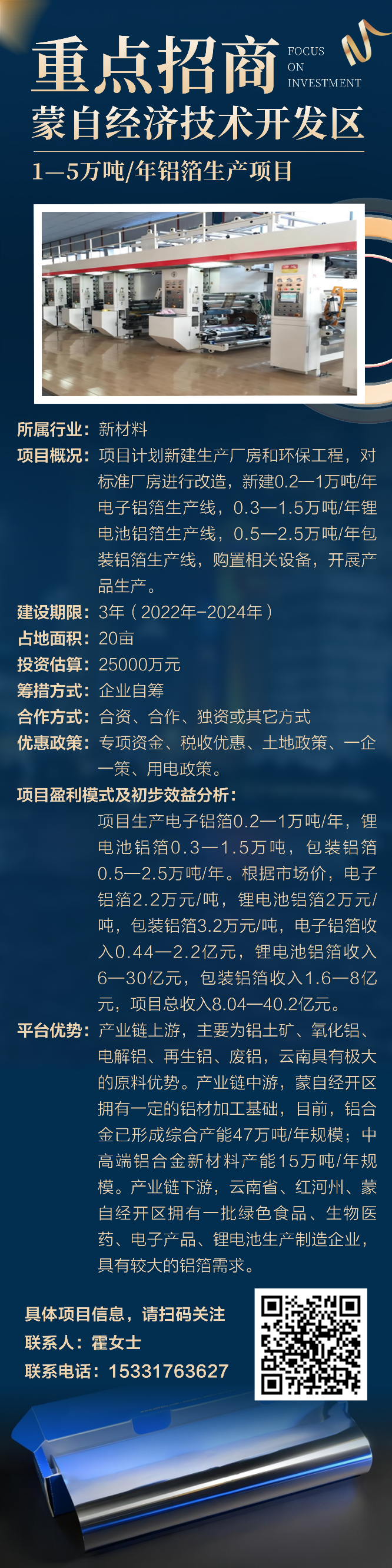 【重点招商】蒙自经济技术开发区1-5万吨/年铝箔生产项目