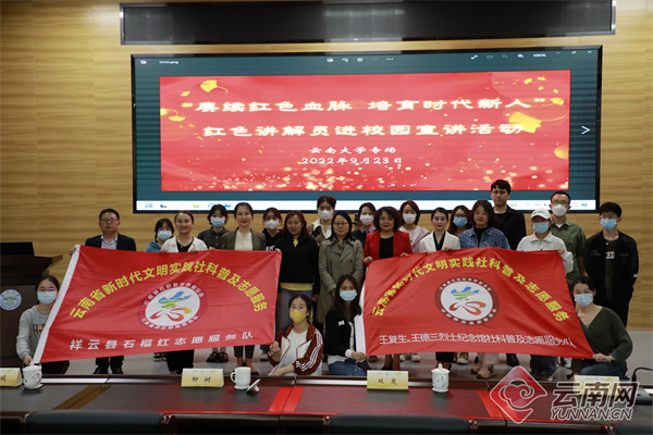 据悉,祥云县“石榴红”志愿服务队成立于2022年5月,涵盖知识宣讲、卫生服务、文明劝导等志愿服务。本次“赓续红色血脉 培育时代新人”红色讲解走进云南大学,开辟了祥云县“石榴红”志愿宣讲团宣讲进高校的先河,通过宣讲,把祥云丰富的红色文化,祥云各族儿女在中华民族伟大复兴的历史进程中不懈奋斗、砥砺前行的宝贵历史,中华民族共同体意识觉醒、实践的历史等传播得更深、更远、更广。