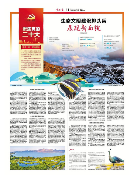 作为我国西南生态安全屏障,云南承担着维护区域、国家乃至国际生态安全的战略任务和重大职责。我省从顶层设计入手,逐步建立起较为完善的生态文明建设制度体系,推动绿色低碳循环发展不断取得新成绩,实现历史性突破。