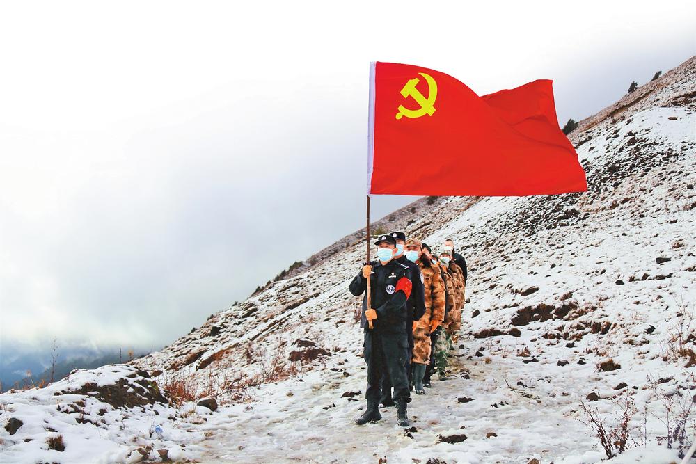 党建引领促边境和谐稳定。地处中越边境线上的麻栗坡县董干镇马崩村委会国境线长11公里。一大早,马崩村党总支书记、村委会主任王远方就与村里的几位党员村民,在山高路陡的边境线上开始了新一天的界务巡逻和巡视界碑工作。“我们就住在国界线边上,有责任和义务守好神圣国土。我是共产党员,又是村党总支书记,扎根边疆,守土固边,要起好带头作用。”王远方说。