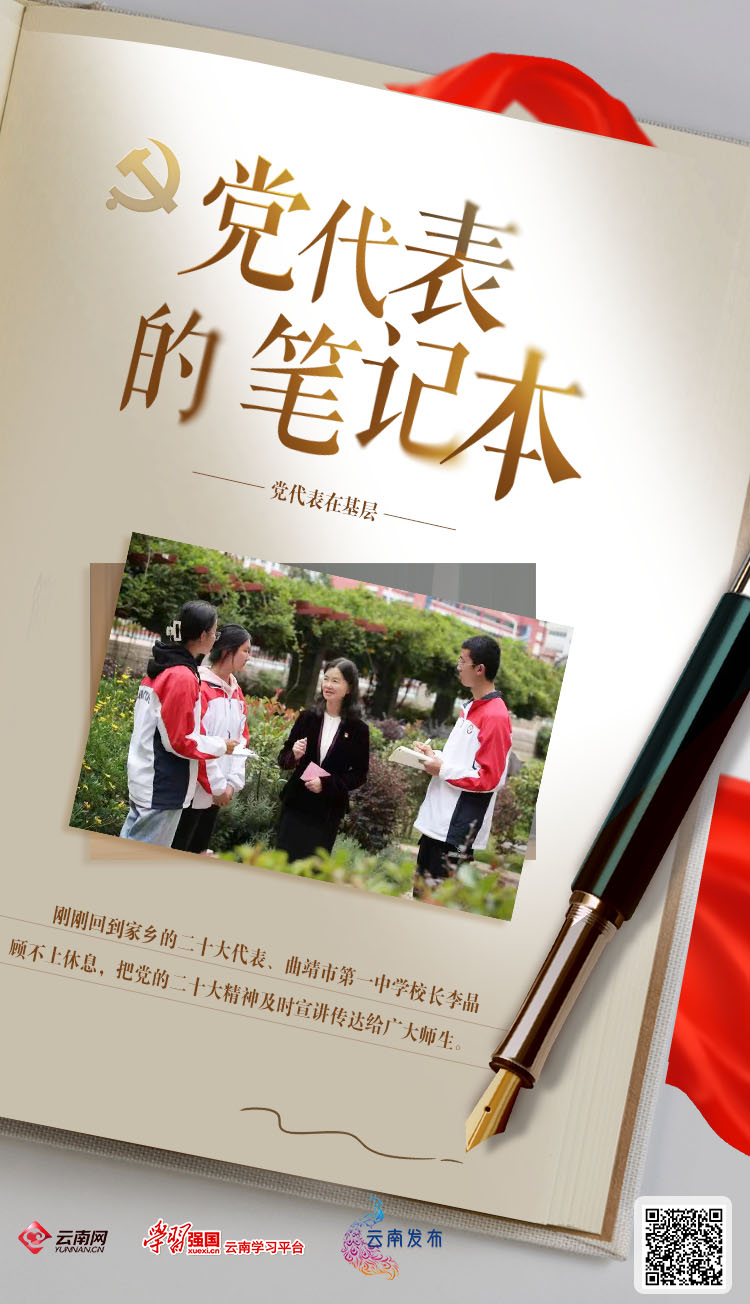 在全校师生的期盼中,刚刚回到家乡的二十大代表、曲靖市第一中学校长李晶顾不上休息,就与师生们深入交流,把党的二十大精神及时宣讲传达给广大师生。