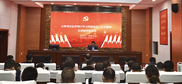 11月24日下午,省应急厅党委书记、厅长李国材以深入学习贯彻党的二十大精神奋力推进我省应急管理事业新发展为题,为全厅党员、干部、职工做学习宣传贯彻党的二十大精神专题宣讲辅导。