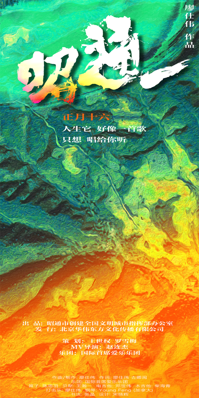 据介绍,歌曲《昭通》表达了对故乡云南昭通的无限深情,歌曲中以“母亲”“游子”“乌蒙”等词语声声述说了对故乡昭通的爱和赞颂。《昭通》歌曲除了邀请昭通籍歌手张义、杨录、郑厚羽、郭羽韬、顾峰、唐诚倾情演唱之外,还邀请廖仕伟担任制片人和作曲,更有王韵壹、熊汝霖加盟助唱,国际首席爱乐乐团、邓世伟、柴海青、王翰一、陈思羽等参与演奏。