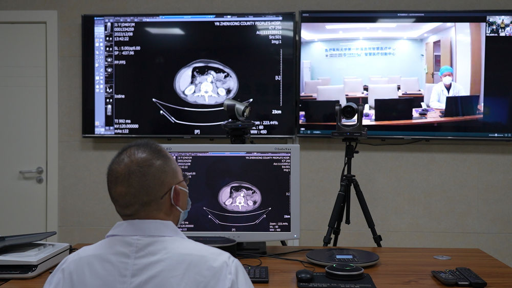图为2022年12月10日,镇雄县人民医院与昆明医科大学第一附属医院远程会诊。新华社记者 王明玉 摄