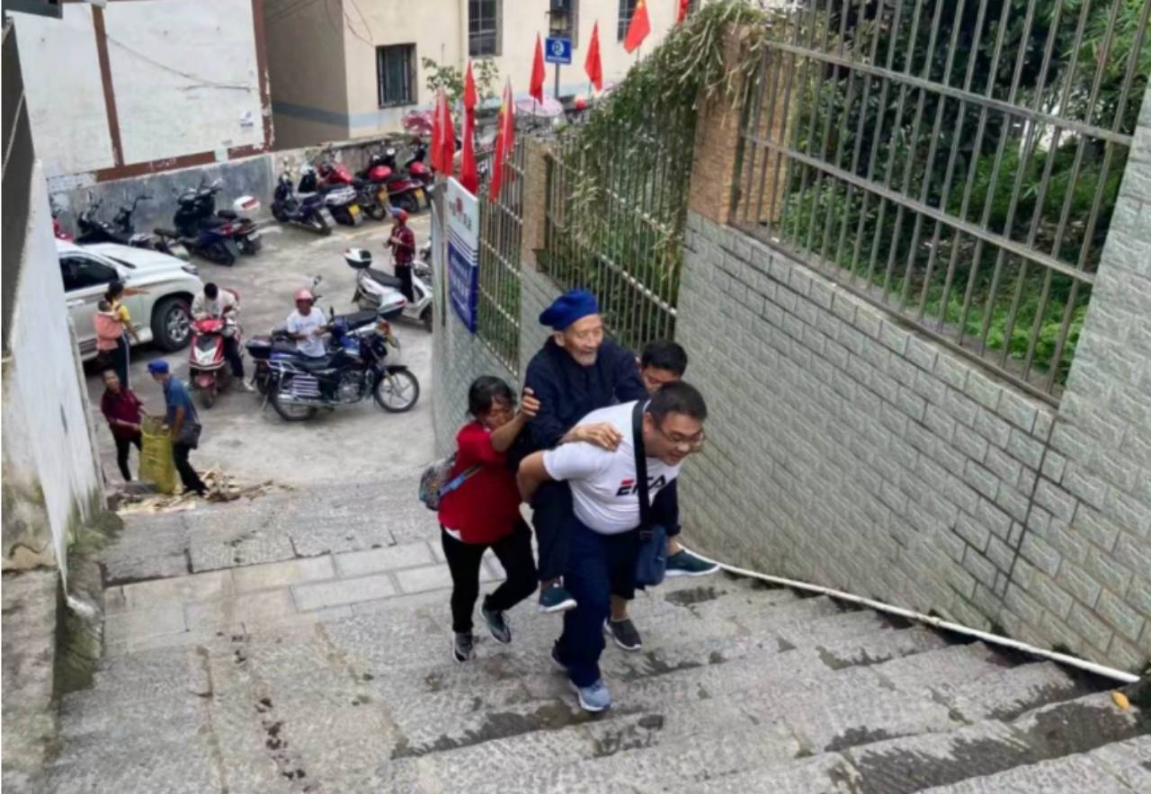 图为彝良县牛街社区工作人员背送老人接种疫苗。通讯员 肖远杰 摄