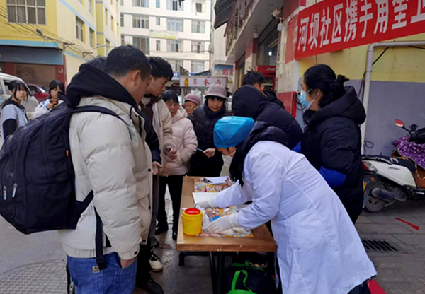 在泼机镇另一个万人村李官营村,40岁的村医付向朋背着药箱,挨家挨户送“防疫健康包”,并向群众示范如何正确消毒。太阳落山,他才顶着寒风往村卫生室走。