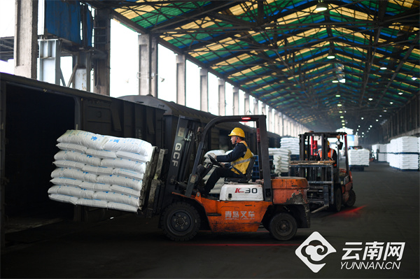在云天化安宁物流园满载着化肥的专列将从园区内铁路专用线出发,把化肥运往全国各地。采用多式联运物流方式,云天化天驰物流在全国55个物流站点为东北、华北、华南、华中、西北、西南等地区储备了充足的春耕用肥。自春耕备耕以来,天驰物流一线员工实行24小时轮班制,今年春节期间,物流一线员工更是驻扎在全国各地物流站点,为春耕用肥、化肥生产原料运输做好协调、运输工作,全力保障春耕物资供应。