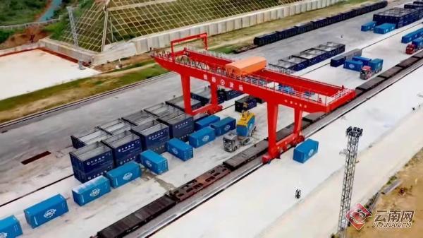 2022年5月26日清晨,由重庆发出,载有60个标准集装箱货物的班列到达临沧火车站,工作人员正忙碌有序地进行接卸车作业,此批货物将从临沧清水河口岸出境运抵缅甸曼德勒。