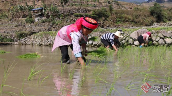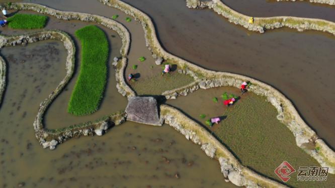 走进绿春县三猛乡腊姑梯田,新一年的水稻插秧正紧张有序进行。农户们三三两两,或拔秧、或运秧、或抛秧、或插秧……大家分工明确、相互协作、干劲十足。所经之田都换上了绿装,让一片片新绿在田野里蔓延开来,一排排整齐有序、间隔适中的秧苗,在阳光下焕发勃勃生机,传递着春天的盎然生机,农户们脸上也都洋溢着欢乐的笑容。