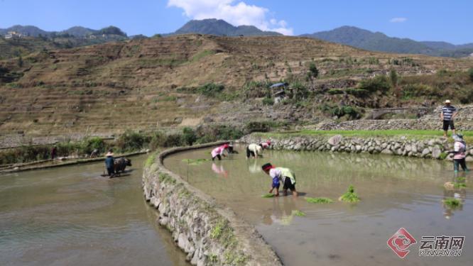 梯田里除了抢抓农时耕种忙的农户们,农技人员忙碌的身影也为这波春耕图景增添了不少色彩。为抢抓梯田水稻的种植黄金期,农技人员主动与农户对接深入田间地头,以现场办公教学的方式,指导农户科学整地、除草、插秧等工作。同时,以科技下乡方式,普及科学种植、科学施肥、科学管护等,让农户提高种植效率、节省生产成本,把“藏粮于地、藏粮于技”真正落实到位。