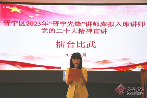 师资质量是讲师入库的核心关键指标,晋宁区从“广”和“精”两个角度入手,采取“金字塔”型遴选模式,在党政机关注重宣传发动、在农村基层注重挖掘推荐、在生产一线注重看业绩、比成绩……在各行各业因地、因事制宜拓宽选优任贤视野;同时搭建先锋讲师库入口、逐级压减讲师规模、提高选聘门槛,开展联合审查严把政治关口,科学改进选聘方式。在本次擂台比武中,各行各业共推荐报名59名,由区委区直机关工委预先组织一轮党的二十大精神“命题微党课”晋级赛,筛选出13名参聘人员参加微党课试讲,试讲结束后严格按照“晋宁先锋讲师库”管理办法择优聘为党员教育讲师,扩大视野、严把入口、好中选优、优中选精。