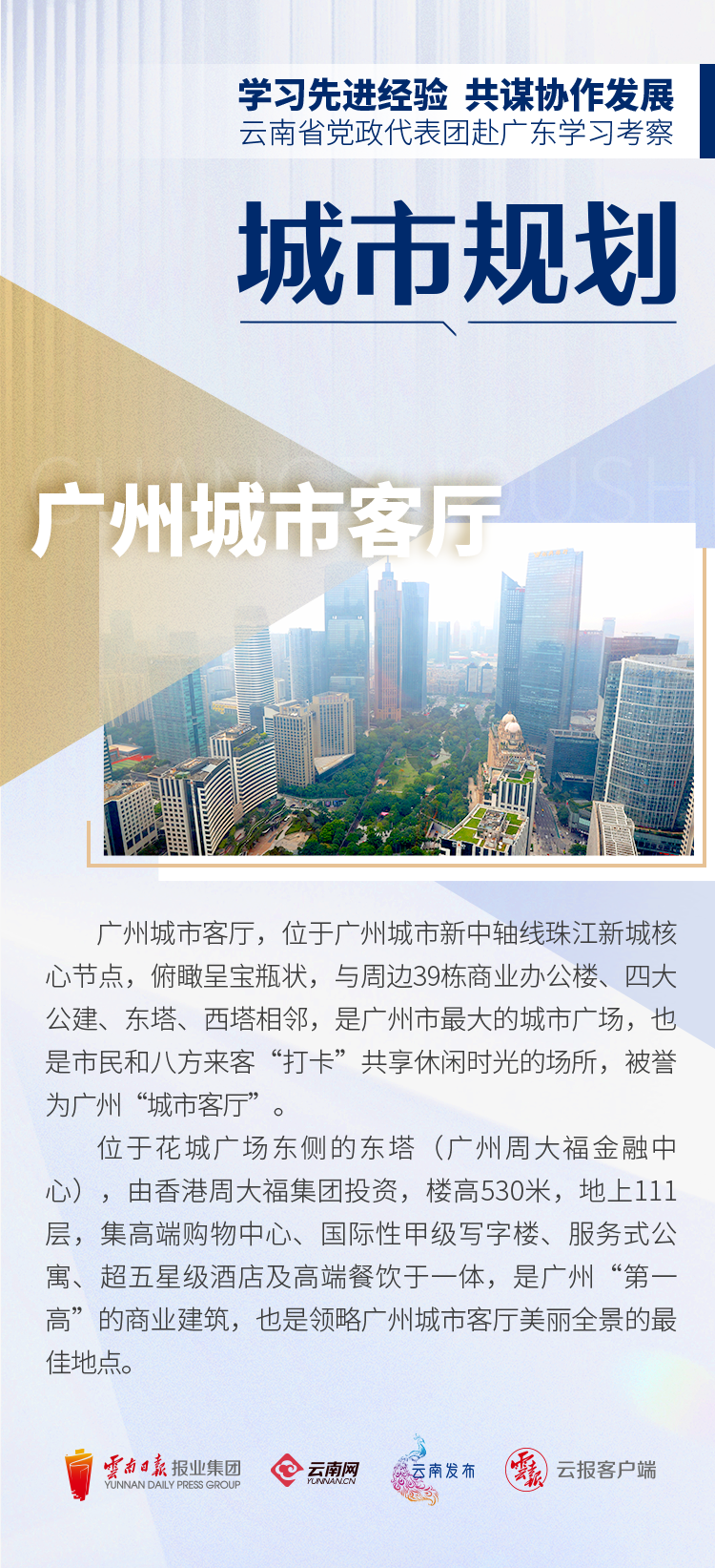 广州城市客厅,不仅彰显着广州特色,更是广州走向世界的强有力筹码。这里是广州中央商务区的核心区,集聚全省最庞大的商务建筑群,金融、商贸等高端服务业云集,成为广州经济发展的一大引擎;这里是广州万民同乐的最美城市花园,讲述城市故事、连通世界文明的文化窗口;这里秉承绿色创新理念,富有人文艺术底蕴,饱含多元亲民情怀,文商旅融合集聚,散发出无限的魅力,热情地款待远道而来的朋友。