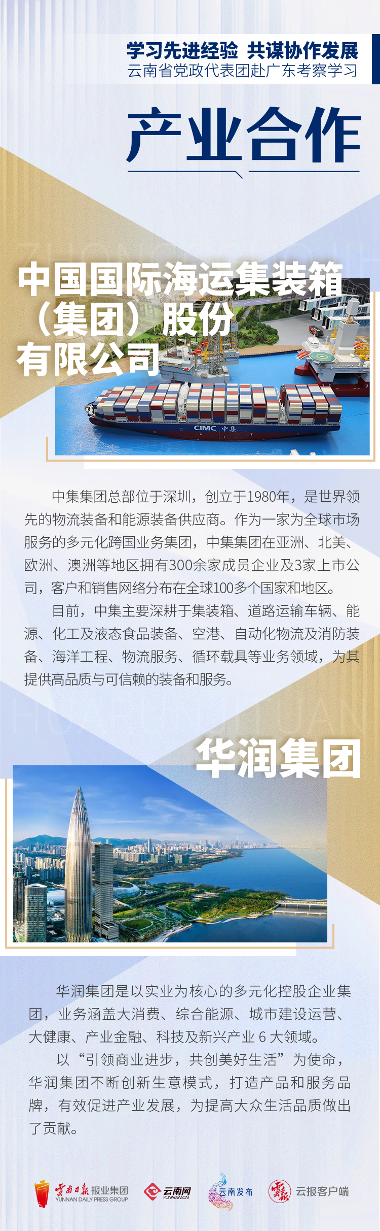 无论华润集团还是中集集团,都已融入了云南的“朋友圈”——不断深化产业合作,共谋发展,不断推动项目落地,实现共赢。