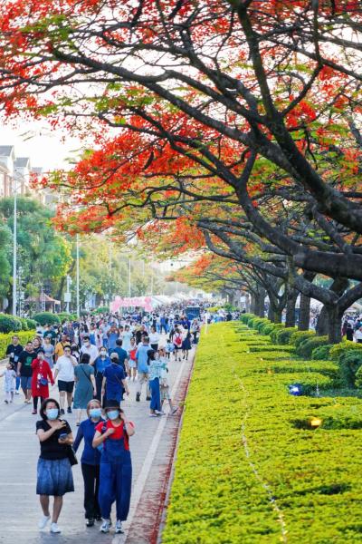 5月20日,“我们一起走过:因为爱的表达·1314·520”主题活动在思茅区石龙路启幕,灿若火焰的凤凰花下满是如潮的人流、幸福的味道。
