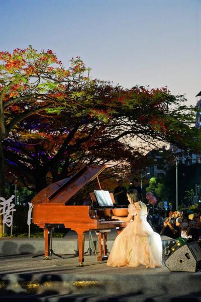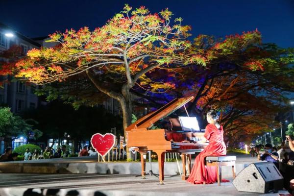 傍晚,本土乐队的演出,以及钢琴、萨克斯、琵琶演奏等,既有青春热情的呼喊,又有爱浓时的低声呢喃。