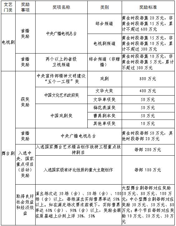 第十条 对电影、电视剧、舞台剧,按以下条件和标准予以奖励: