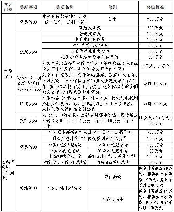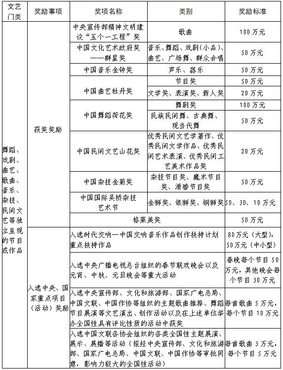 (四)获中央宣传部等国家部委批准设立的常设全国性文艺奖项或在国内外产生重大影响力的优秀文艺作品。