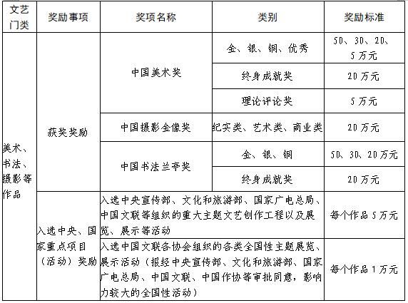 第十一条 其他文艺门类项目获奖或在国内外产生重大影响的,按以下条件和标准予以奖励: