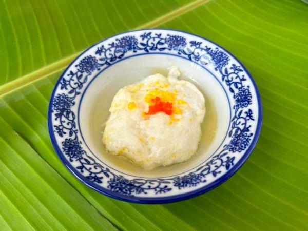 谈起普洱美食,“鸡豆腐”绝对是绕不过去的美食顶流。制作“鸡豆腐”的原料并不复杂:猪肉、鸡肉和蛋清,足矣。鸡肉猪肉混剁成肉蓉,与打发的蛋清蒸煮而成,听起来似乎简单,却最易失之毫厘,谬以千里。蛋清须打发得恰到好处,肉蓉同样也须剁得恰当粗细,火候欠佳则难以成型,调味过头则风味尽失。“鸡豆腐”色泽雪白剔透,体积匀称饱满,用勺子舀下去的一瞬间,就会被这食物特殊的质感折服,入口的时刻,则更惊艳于那份轻盈,没有亲口品尝过的人,恐怕真的难以切身体会。“鸡豆腐”作为普洱传统美食文化延续的典范,烹饪和制作技艺从民国年间流传至今已有一百多年的悠久历史,于2016年被评为普洱市市级非遗代表性项目。