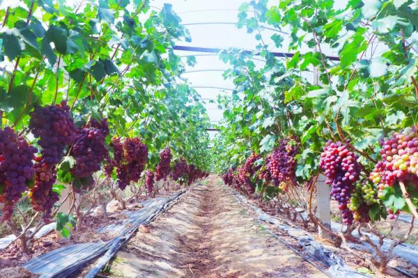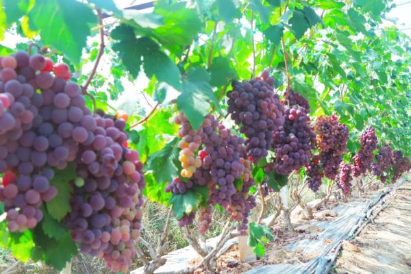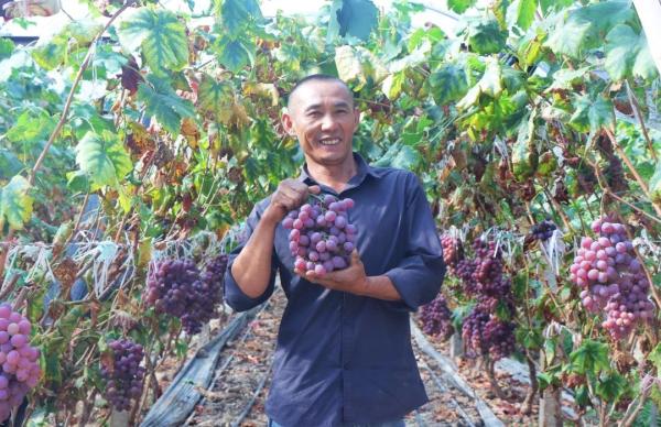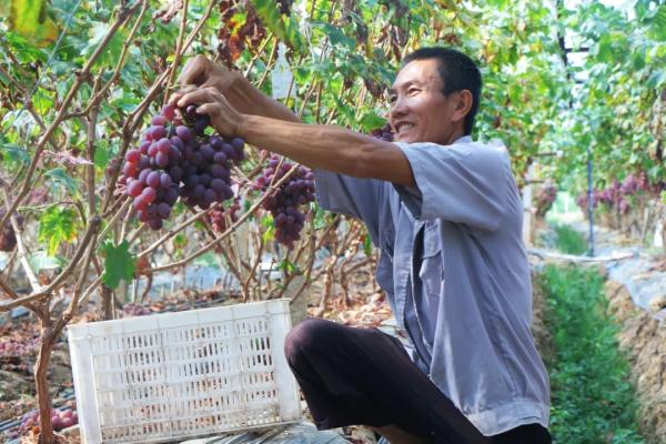 余定武是芒东村的葡萄种植大户,由于市场价格好,今年共开发了20亩土地用于种植葡萄。“我们现在种的主要是红提,一年亩产能达两吨左右,按照每吨一万元的价格,一年下来至少能挣30-40万元,接下来打算引进‘阳光玫瑰’品种。”在余定武家的大棚里,到处结满了鲜嫩水灵的果实,他边介绍边把成熟的葡萄采进果篮里。