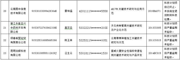 自通告之日起,云南省科技厅将按规定对名单中的项目单位和项目负责人实施3年时限的失信惩戒,停止其推荐或参与国家和省科技计划项目的申报、实施、管理和服务,申报国家和省科技奖励,以及给予表彰奖励、政策试点、政府采购、政策性资金及项目扶持等的资格。