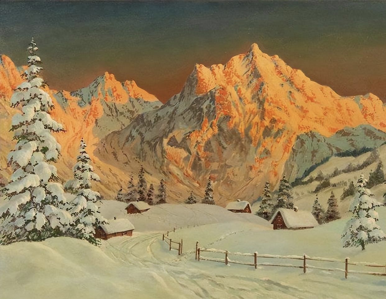 奥地利画家阿洛伊斯·阿内格笔下的雪山