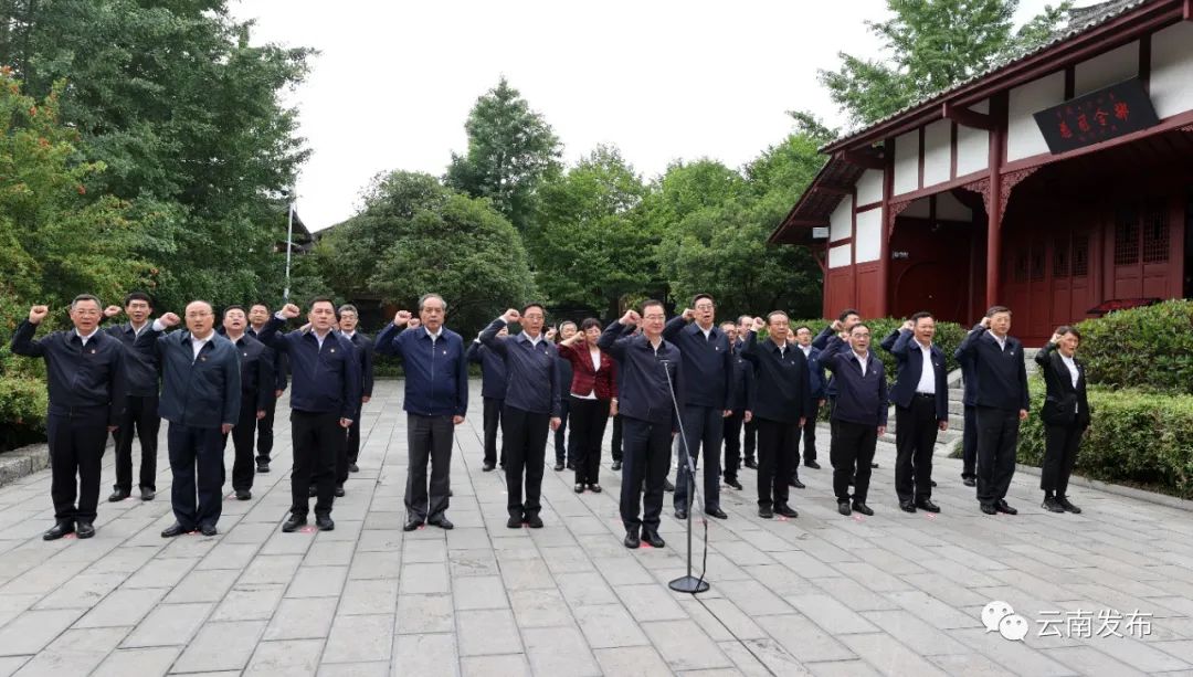 6月5日,参加省领导干部主题教育读书班的全体学员在扎西会议会址,重温入党誓词。云南日报记者 雷桐苏 顾彬 摄