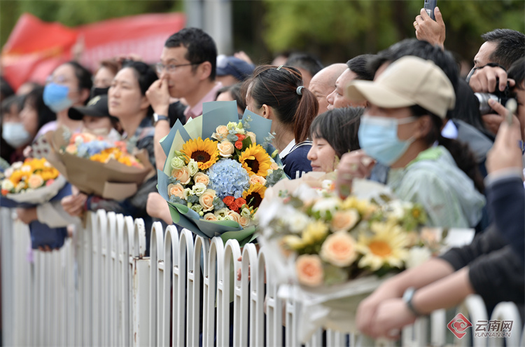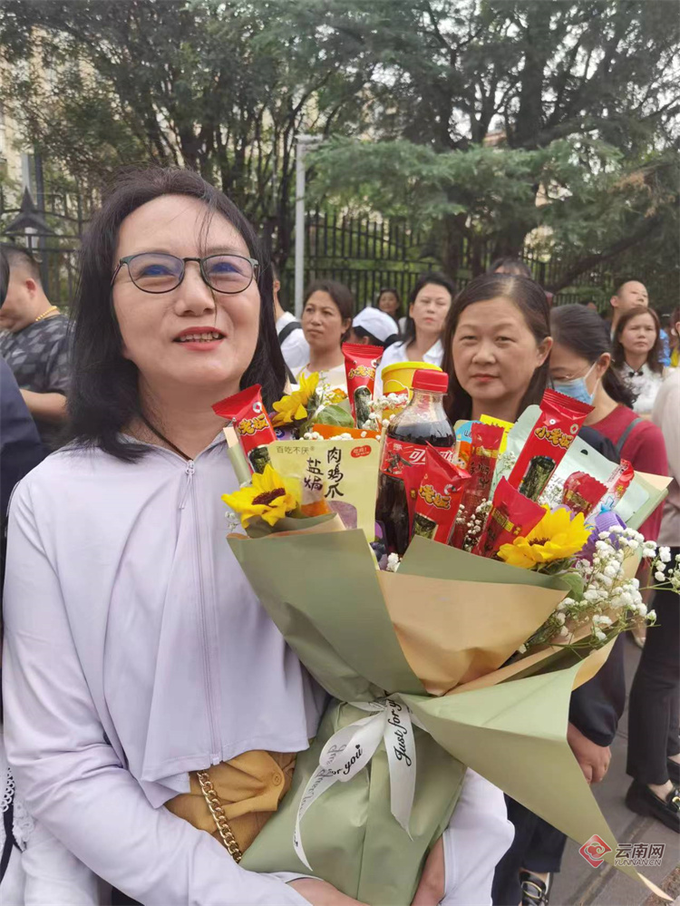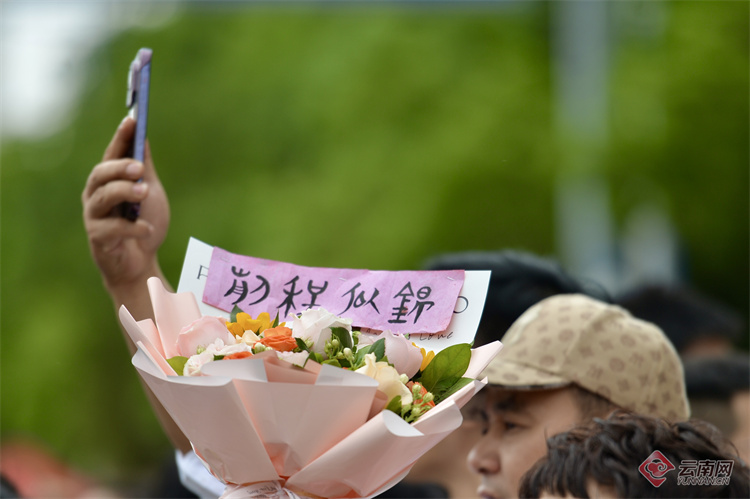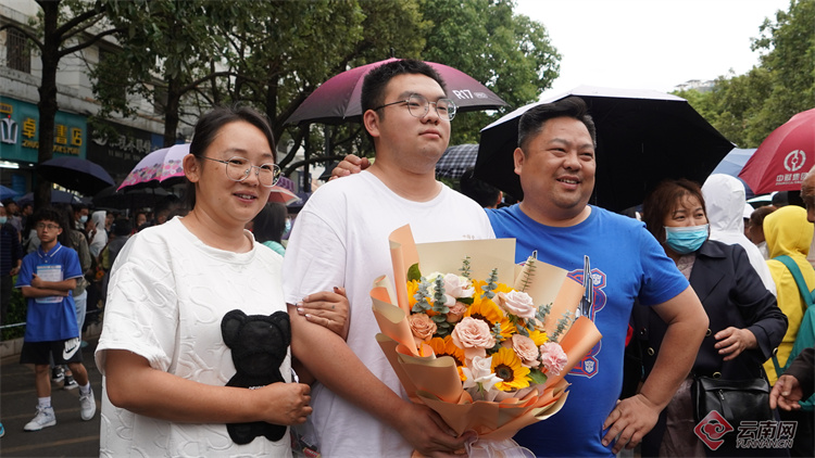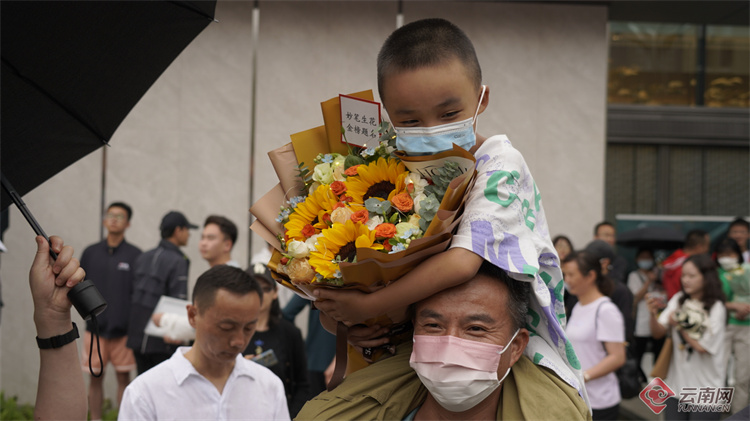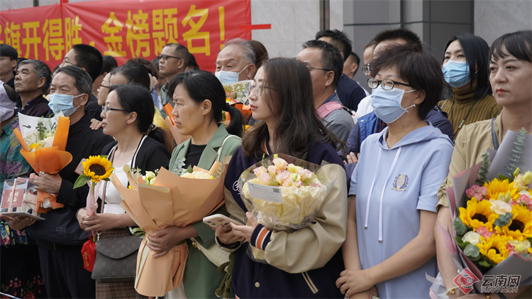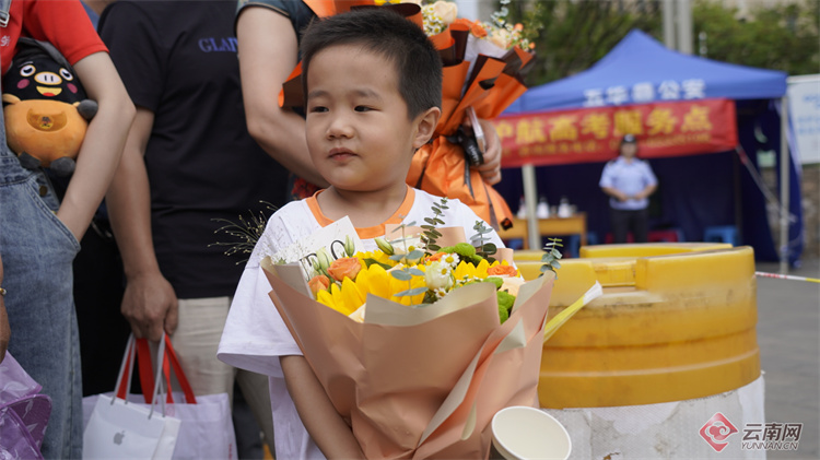 家长手捧“别样”鲜花迎接考生,仪式感满满。