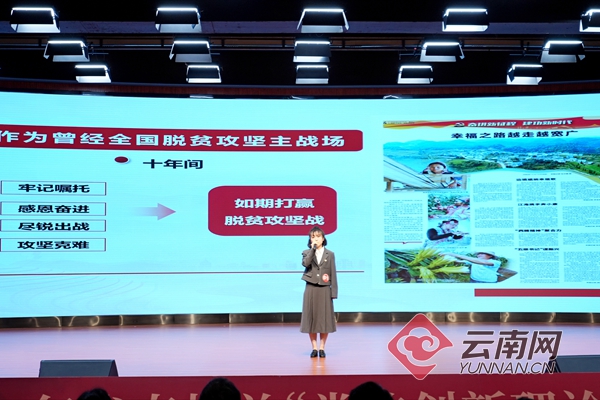 活动现场,选手各显神通,赛事精彩纷呈。来自省财政厅、省机关事务局、云南日报报业集团等单位的参赛选手紧扣宣讲主题、立足工作实际、联系心路历程,热情洋溢的宣讲,铿锵有力的语言,为现场观众呈献了有料有味的“理论大餐”,让现场观众从不同角度深化了对党的创新理论的学习理解,引发了共鸣,将宣讲比赛不断引入高潮,起到了“拨亮一盏灯,照亮一大片”的作用。